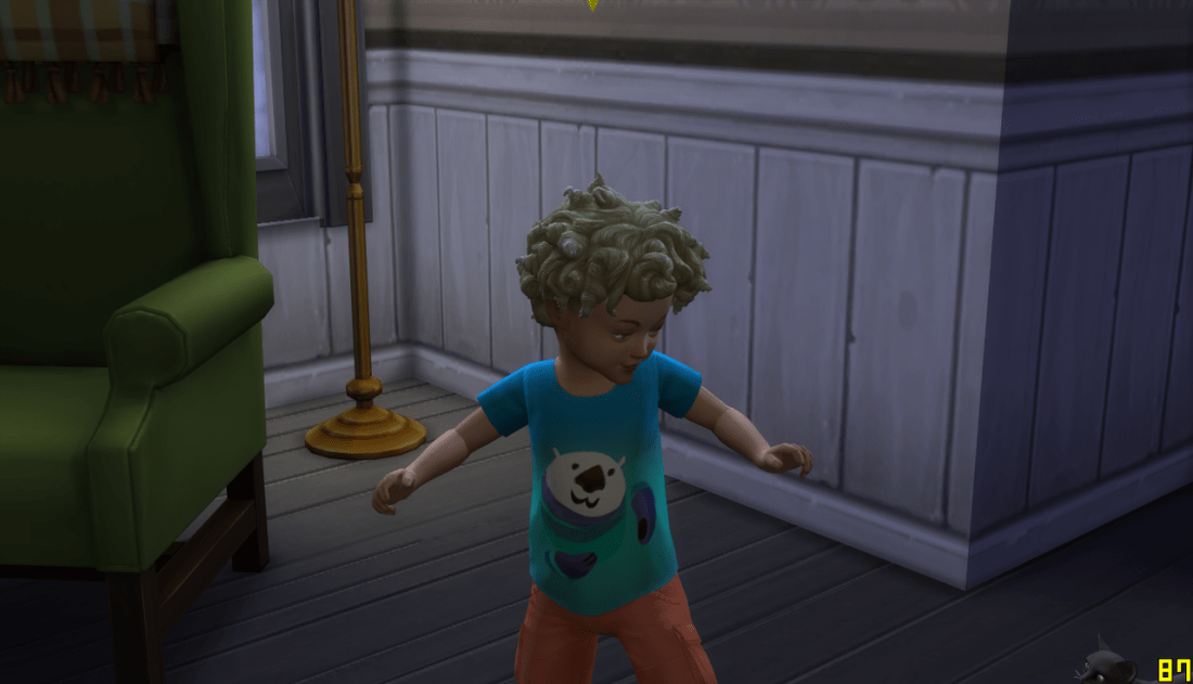Barth is a toddler, he has his mother’s hair.